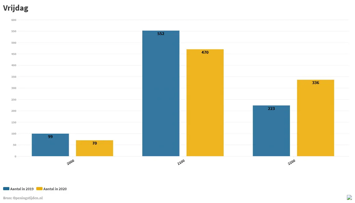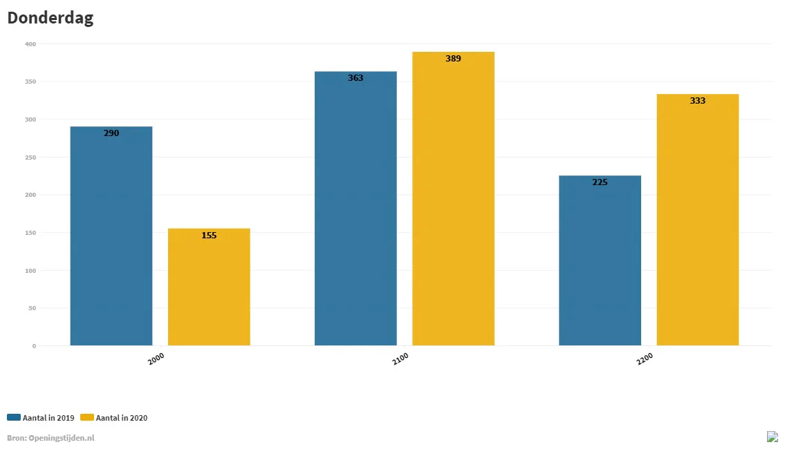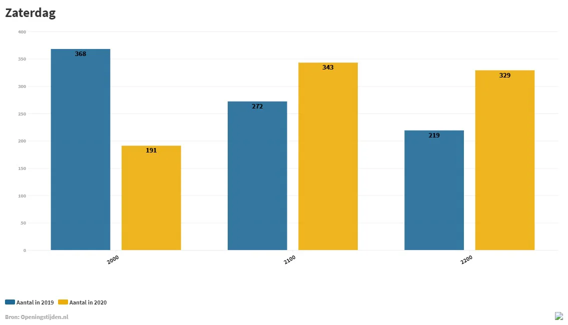 De veranderingen hebben tot gevolg dat het aantal winkels dat om 20.00 uur de deuren sluit, gemiddeld over de hele week, met 35 procent is gedaald in vergelijking met 2019. Op zaterdag is dit percentage zelfs met ruim de helft afgenomen.