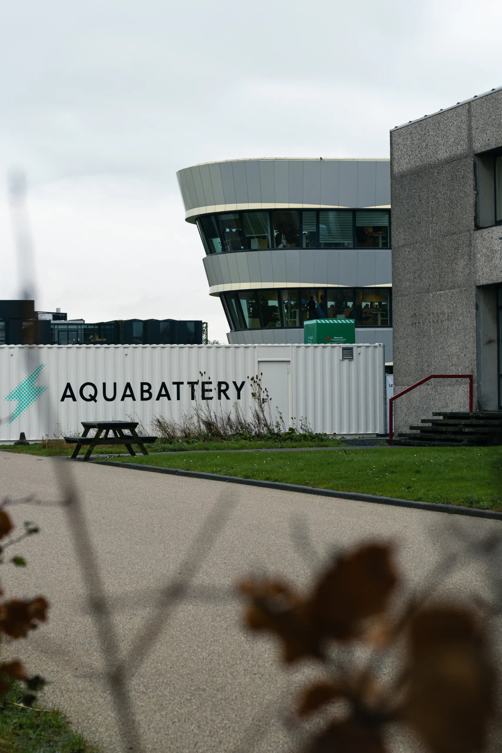 Op de campus van Deltares staat sinds november 2024 een proefopstelling van de Aquabattery. Een blauwe zeecontainer met een rij opslagvaten ernaast, bedoeld als oplossing voor langdurige energieopslag (LDES), nodig om het energiesysteem te balanceren.